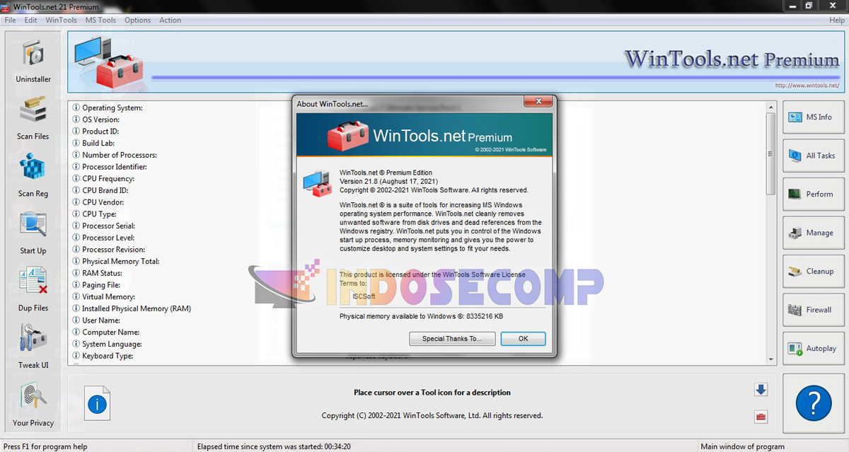 WinTools.net adalah seperangkat alat untuk meningkatkan kinerja sistem operasi MS Windows. WinTools.net dengan bersih menghapus perangkat lunak yang tidak diinginkan dari disk drive dan referensi mati dari registri MS Windows. WinTools.net memberi Anda kendali atas proses startup Windows, pemantauan memori dan memberi Anda kekuatan untuk menyesuaikan pengaturan desktop dan sistem agar sesuai dengan kebutuhan Anda. Menambahkan lebih banyak kecepatan dan stabilitas untuk koneksi Anda. Memastikan privasi Anda dan menjaga keamanan informasi sensitif. WinTools.net Premium berisi alat: Clean Uninstaller, Scan Files, Scan Shortcuts, Scan Registry, Startup Manager, Tweak UI, Net Tweaker, Privasi Anda, Invisible Man, File Shredder.